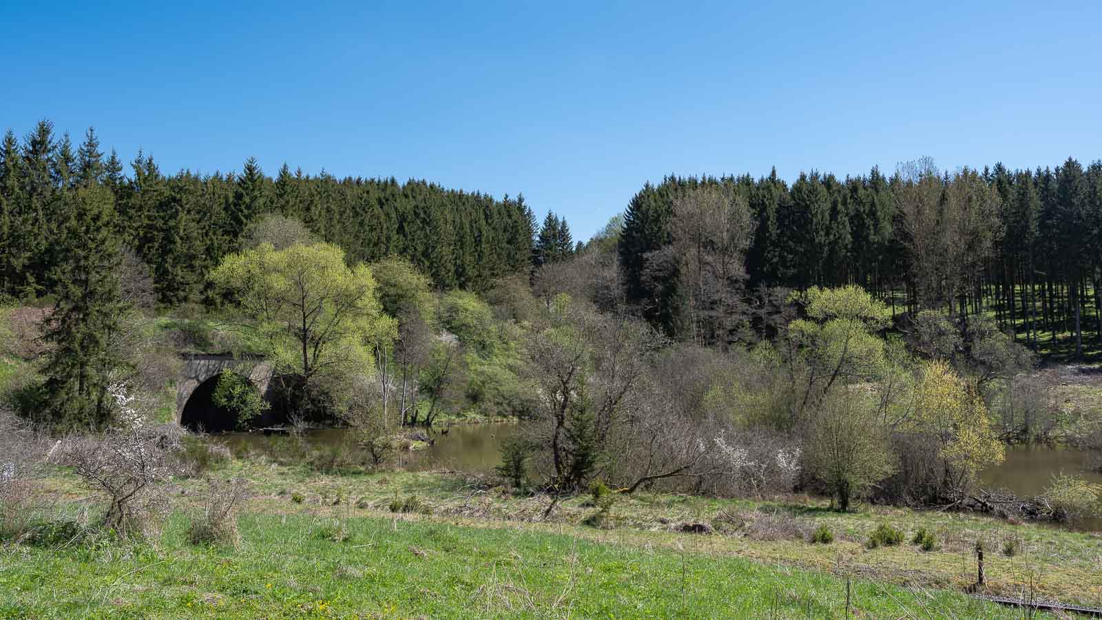Am Bahnhof Blankenheim Wald (Haus 3 am „Bahnhof“ laut Open Street Maps) war der Wanderweg, der hier über den Wissbach führte, mit rotem Flatterband abgesperrt an dem ein Zettel klebte „Privatgrundstück Betreten Verboten“. Es fehlten uns nur ca. 10 m die wir auf dem privatem Gelände, auf dem gebaut wurde, zurückzulegen hätten. Es tauchte eine Frau auf die ich darum bat ob wir nicht doch darüber laufen dürften. Einen anderen Weg gab es nicht und ansonsten hätten wir hier den Rückweg antreten müssen. Die drehte sich nur unwirsch ab und gab ein deutliches : „NEIN !“ von sich.