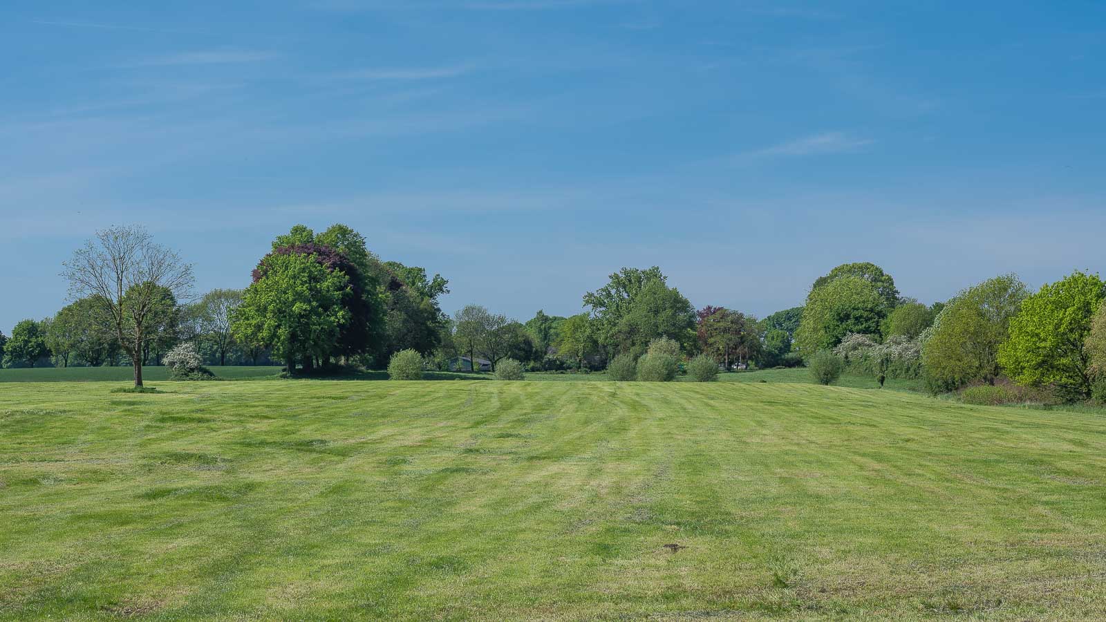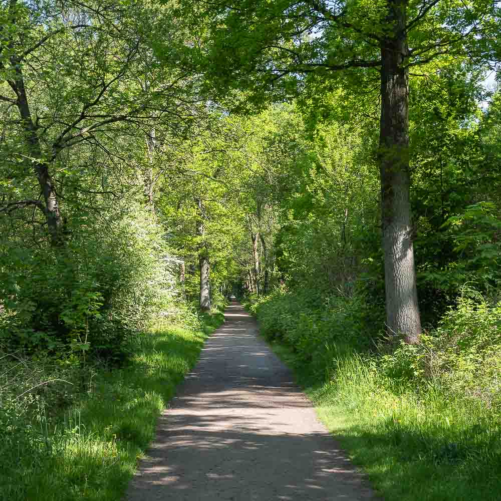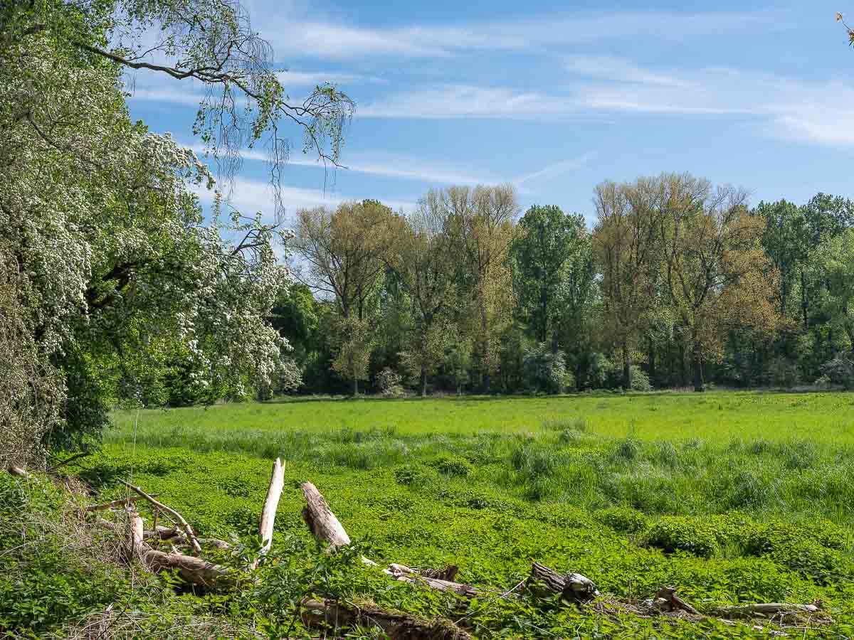 Ich wanderte vom Park in den Schlosswald und nahm dort eine kleine Abkürzung, die mich an einen mitten im Wald gelegenen Teich vorbei führte. Unterwegs waren einige Radfahrer und Gassi Geher. Der weitere Weg führte in nordöstliche Richtung nach Westerhold. Die Strecke verlief über offenes, flaches wiesenartiges Gelände mit schöner, aber wenig spektakulärer Aussicht.