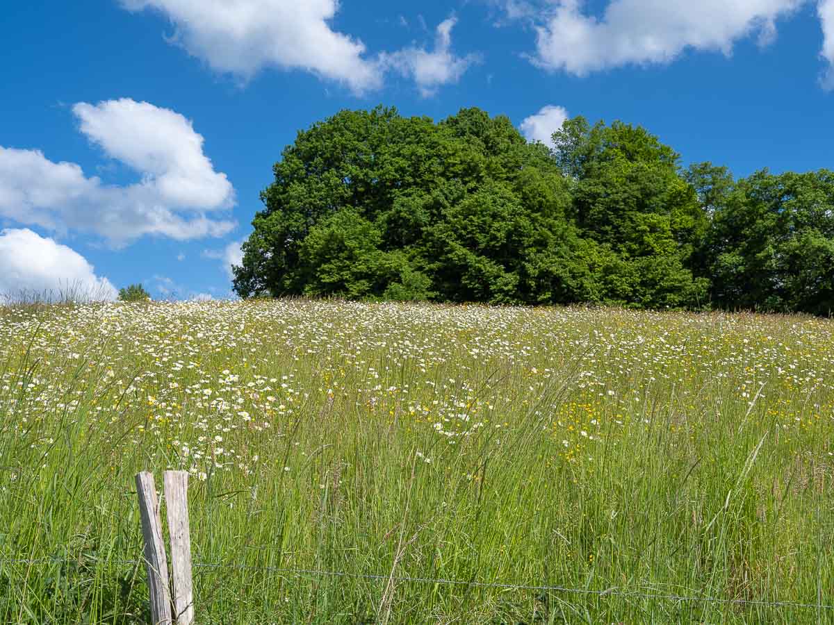 Bei dem Abstieg von den Höhen hinunter in das Naafbachtal war ein Wiesenweg stark zugewachsen. Viele Wanderer können hier nicht unterwegs gewesen sein. Nun denn, meine Zecken-Schutzimpfung hatte ich ja intus.