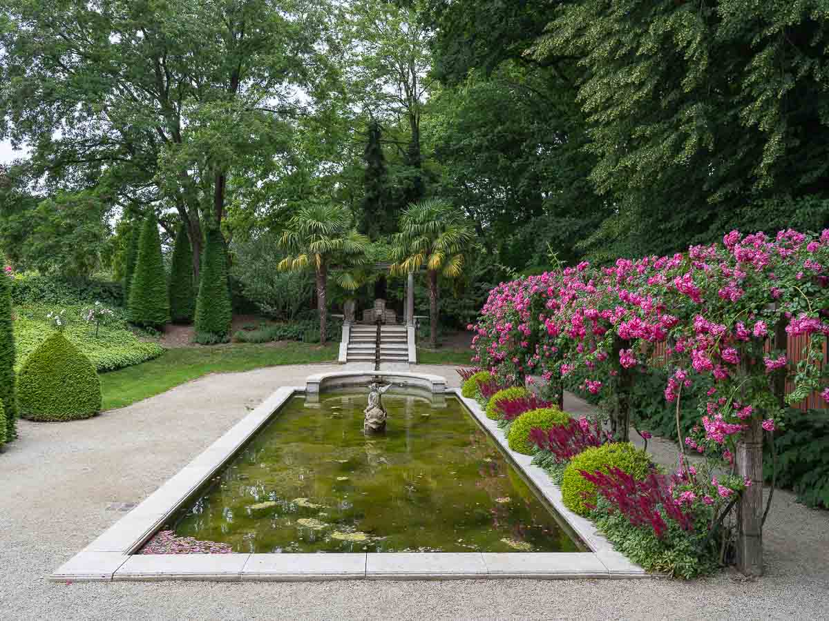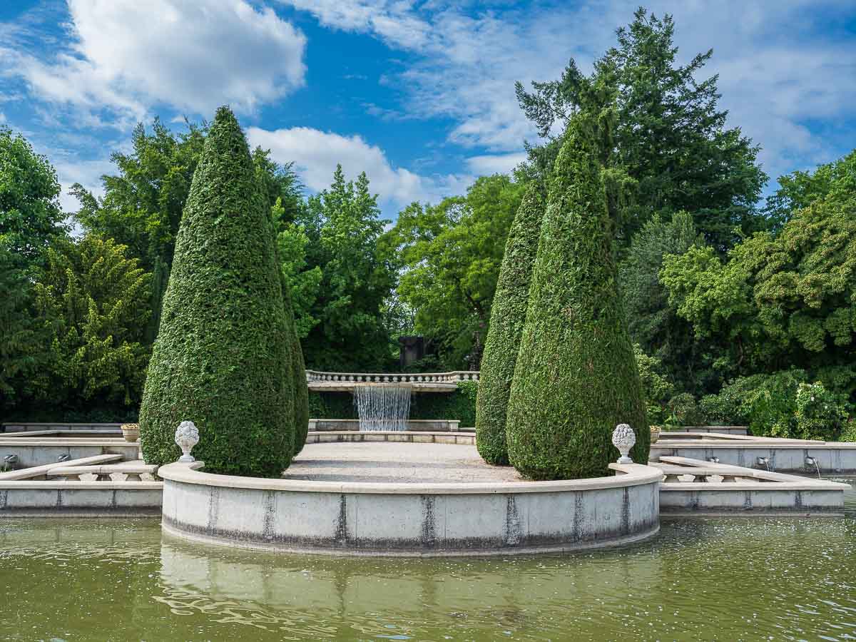 Der Park ist von diversen Teichanlagen durchzogen (siehe Karte) und es gibt zahlreiche Fontänen und künstlich angelegte Bachläufe, auch ein kleiner Wasserfall ist dabei. An einem Teich gibt es eine Vernebelungsanlage die einiges an Wasser als Nebel versprühte.