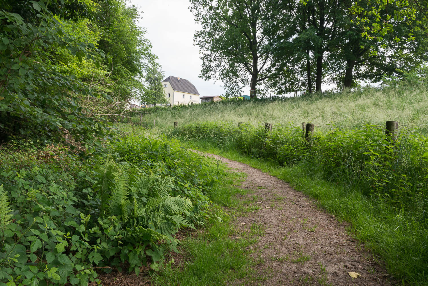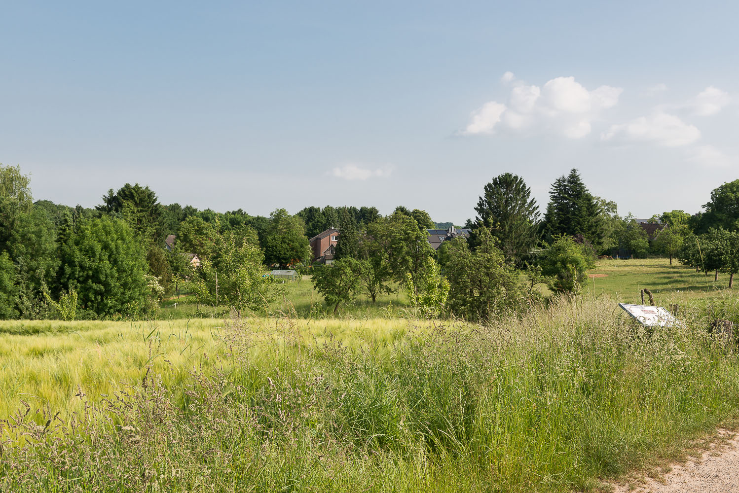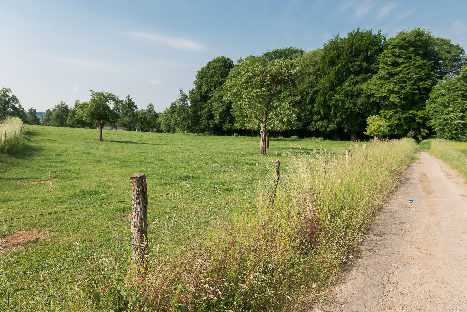 Ich hingegen starte am Wupperbogen, fotografiere noch 2 Fachwerkhäuser in Leichlingen und steige durch den Wald zu den Obstwiesen auf.