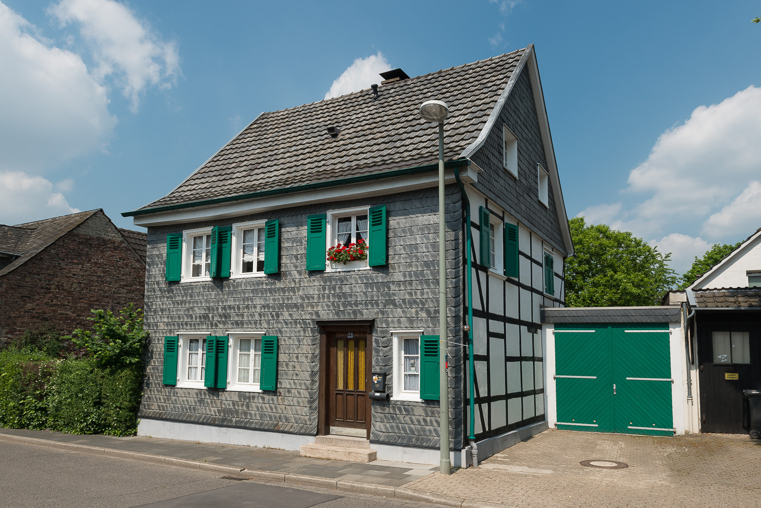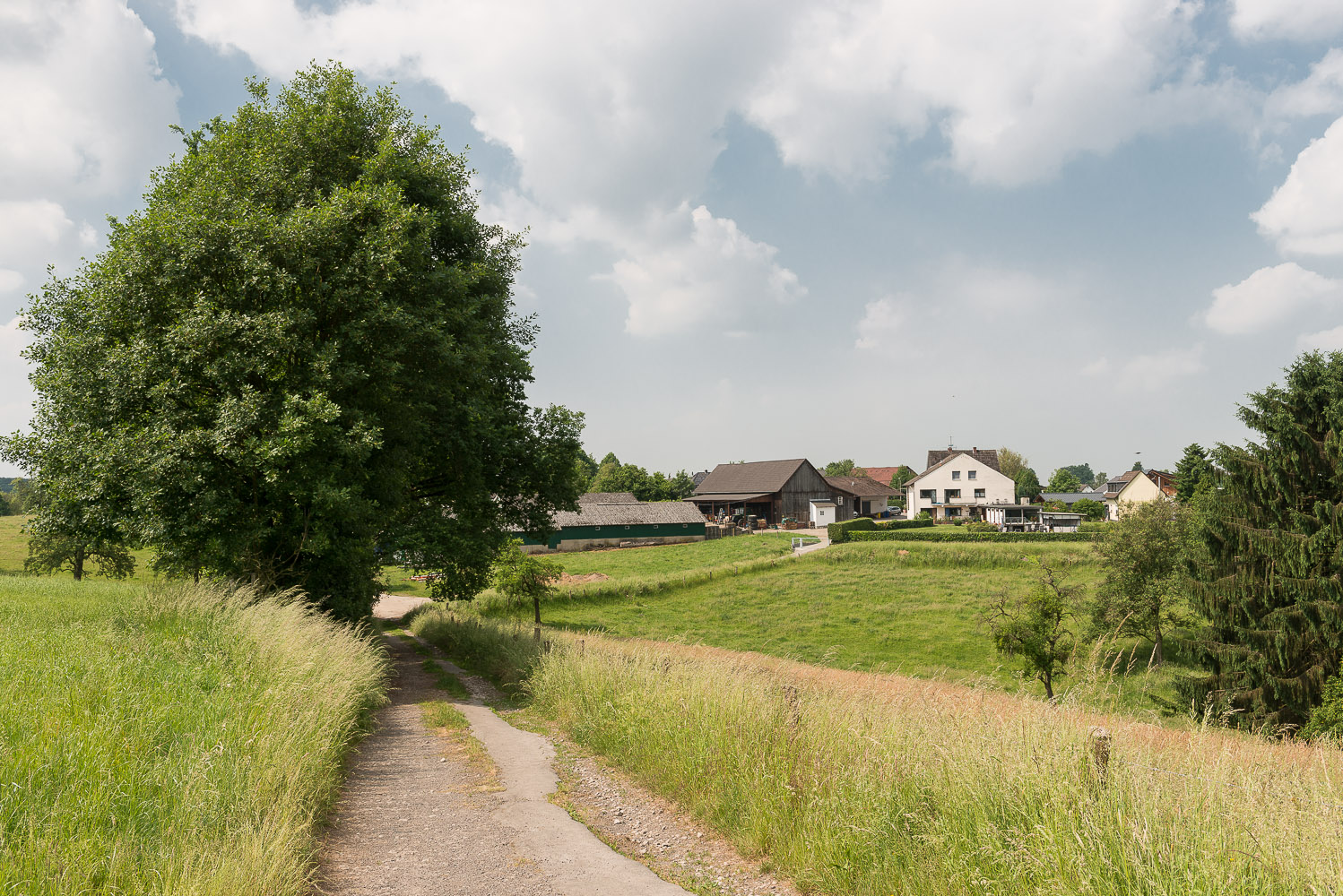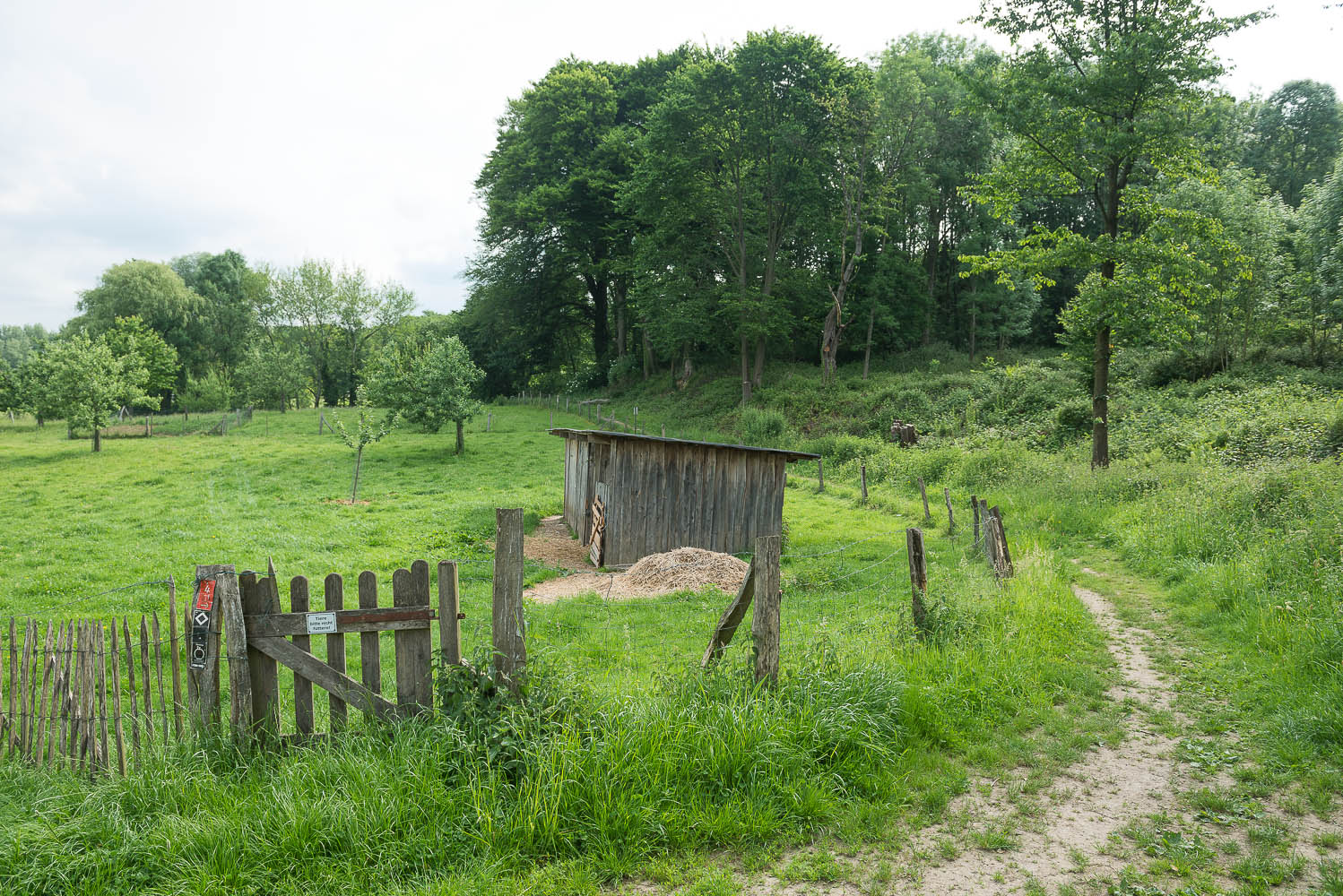 Ich hingegen starte am Wupperbogen, fotografiere noch 2 Fachwerkhäuser in Leichlingen und steige durch den Wald zu den Obstwiesen auf.