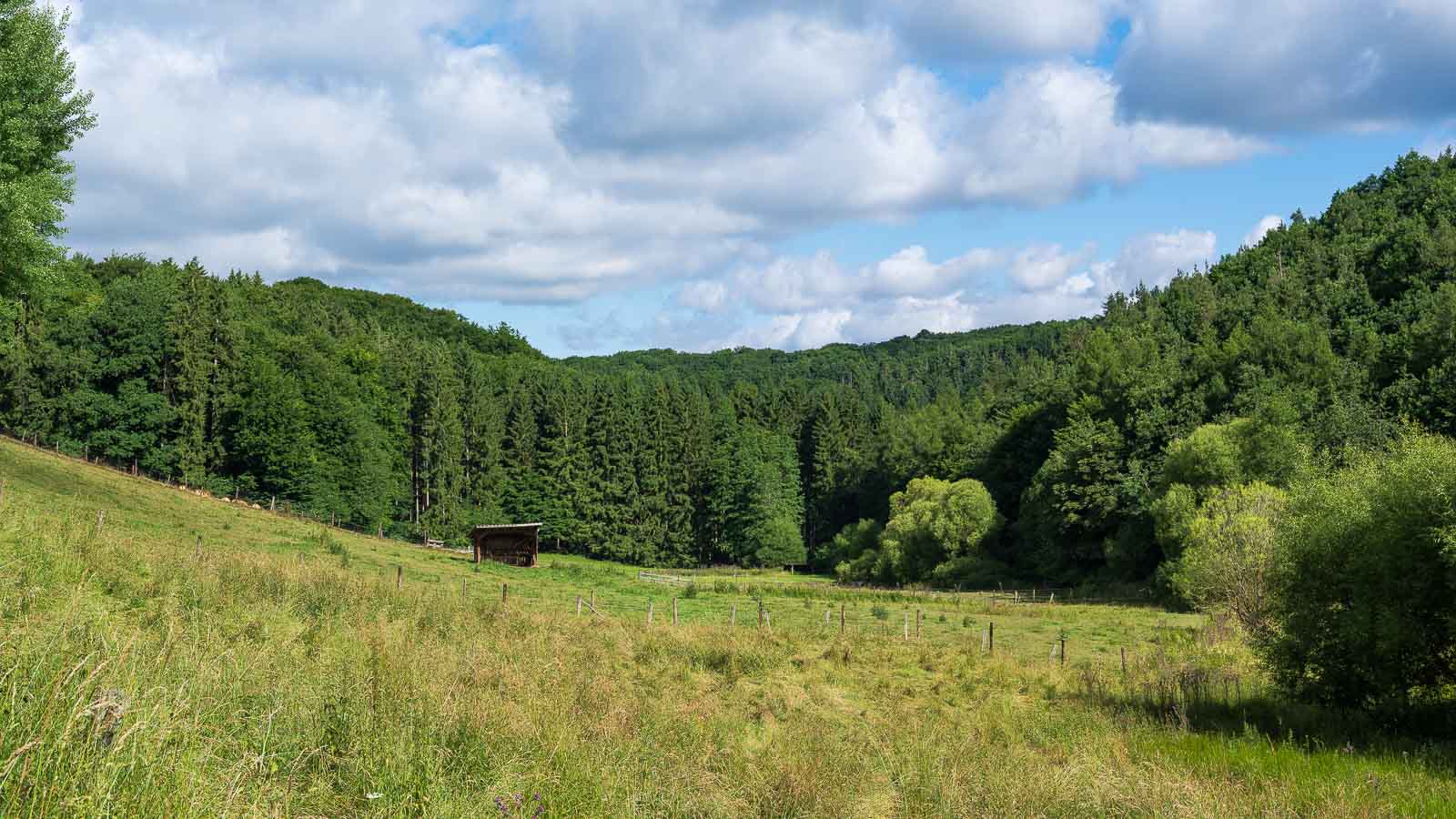 In der Gegend verlaufen zahlreiche Eifelschleifen und Spuren, so war auch mein Parkplatz Wanderparkplatz einer Eifelschleife. Vom Parkplatz aus ging es nach einem kurzen Wegstück entlang der L 165 in das Waldbachtal und von dort über das Schußbachtal nach Mahlberg.
