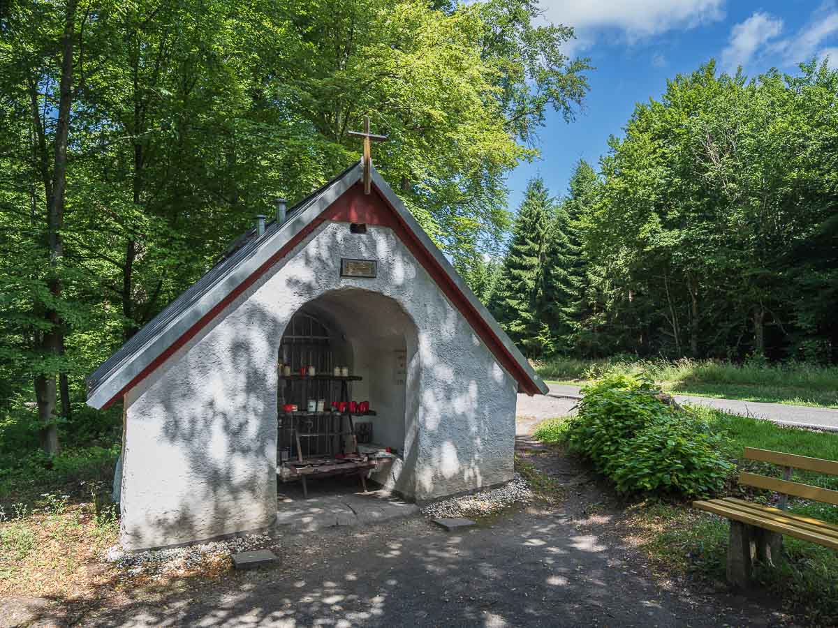 Erwähnenswert für den Rückweg wäre noch eine Kapelle bei Decke Tönnes und ein wunderschöner Wegabschnitt im Bodenbachtal kurz vor Erreichen meines Parkplatzes. Pausenbänke gab es unterwegs ausreichend, Gelegenheiten zum Einkehrschwung sah ich keine. Da würde sich wahrscheinlich ein Besuch in Bad Münstereifel auf dem Rückweg anbieten. Ich machte mich aber gleich wieder auf den Heimweg und verzehrte meine Brote auf der Autobahn. Da ich schon früh gestartet war, kam ich zum Mittagessen wieder in Leichlingen an.