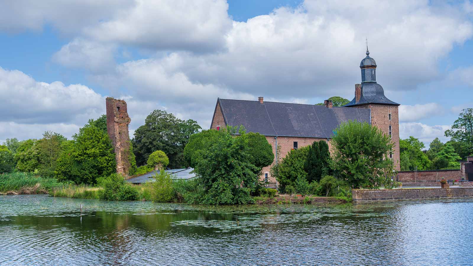 Die Mühlen waren in Privatbesitz und boten keine Besichtigungsmöglichkeiten. Nach 3 km kam ich zu Schloss Tüschenbroich, ebenfalls in Privatbesitz und nicht zu besichtigen. Das Schloss liegt an mehreren Teichen die über einen Bootsverleih zugänglich sind (der hatte aber geschlossen und ist ebenso wie der dortige Minigolfplatz nur am Wochenende geöffnet).