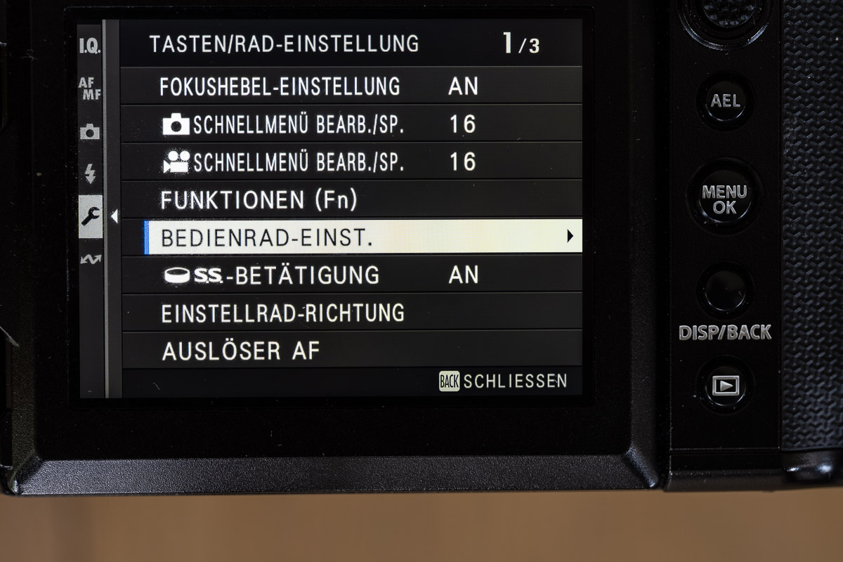 Als ISO sollte man den Base-ISO von 80 einstellen. Die Festlegung des ISO-Wertes habe ich mir auf das hintere Einstellrad gelegt. Wie dies funktioniert ist in 3 Bildern dargestellt (MENÜ=>Einrichtung=>Tasten/Rad-Einstellung=>Bedienrad-Einst.=>Hinteres Bedienrad auf ISO).