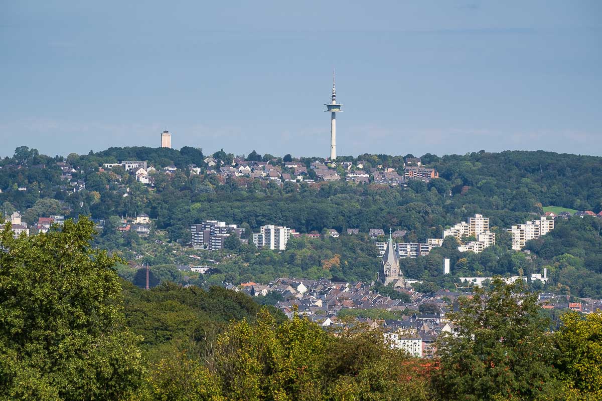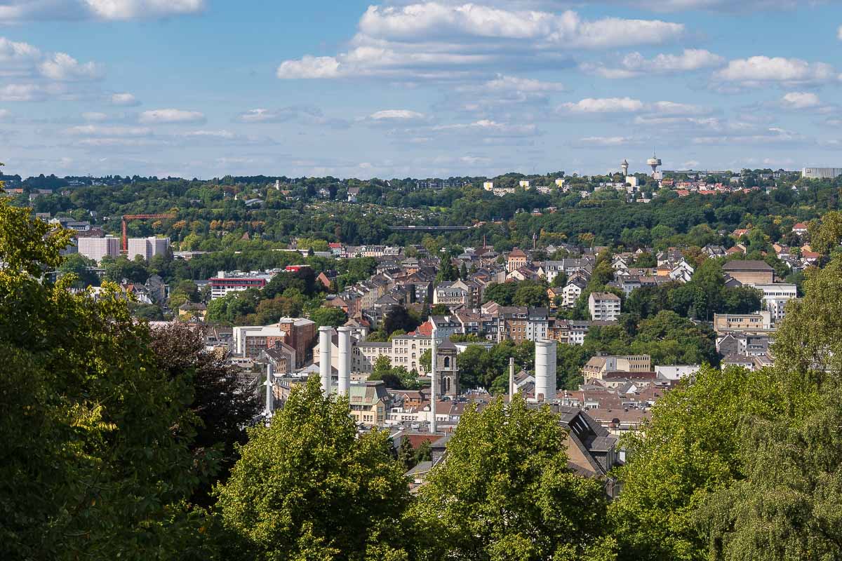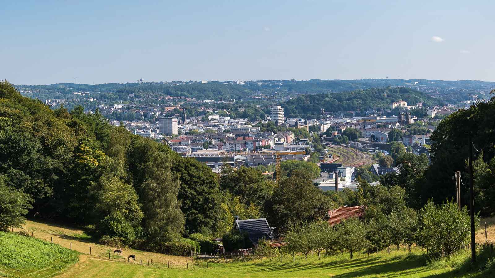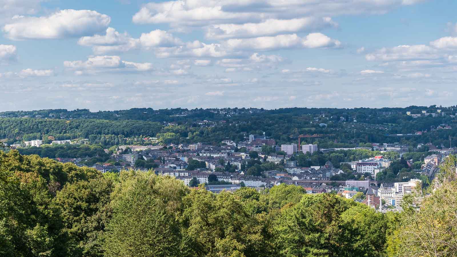 Je höher wie kamen um so mehr verschwand das Rauschen des Verkehrs aus dem viel befahrenen Stadtgebiet im Tal. Auf den Höhen verläuft auch die Samba-Trasse, eine ehemalige Bahnlinie die rund zum Radweg umfunktioniert wurde. Wir wanderten jedoch über breite Waldwege mit gelegentlichen Ausblicken auf Elberfeld und die gegenüberliegende Talseite.
