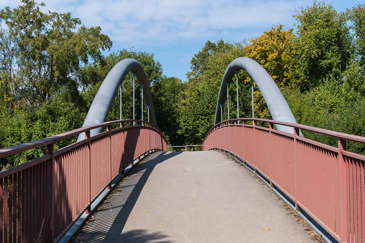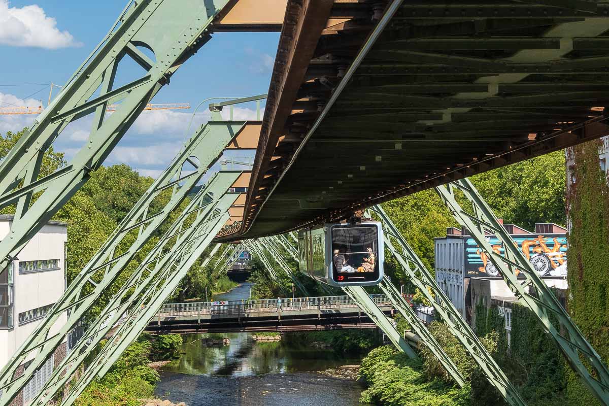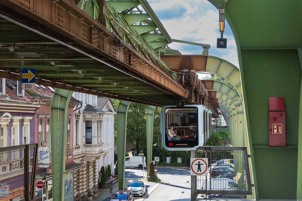 Danach machten wir uns an den Abstieg nach Barmen. Er verläuft durch schöne Parkanlagen, ist aber stellenweise recht steil. In Barmen lösten wir ein Schwebebahnticket zur Rückfahrt nach Sonnborn. Dabei kam natürlich meine Kamera zum Einsatz. Es war schon einige Jahre her seit ich zuletzt über die Wupper geschwebt war. Da mir das Sahnehäubchen auf dem Pflaumenkuchen verwehrt blieb, nahm ich die Fahrt mit der der Schwebebahn als Sahnehäubchen dieser Wanderung gerne mit. In Sonnborn mußten wir aussteigen und noch ca. 500 m zurück zu unserem P+R Parkplatz laufen.
