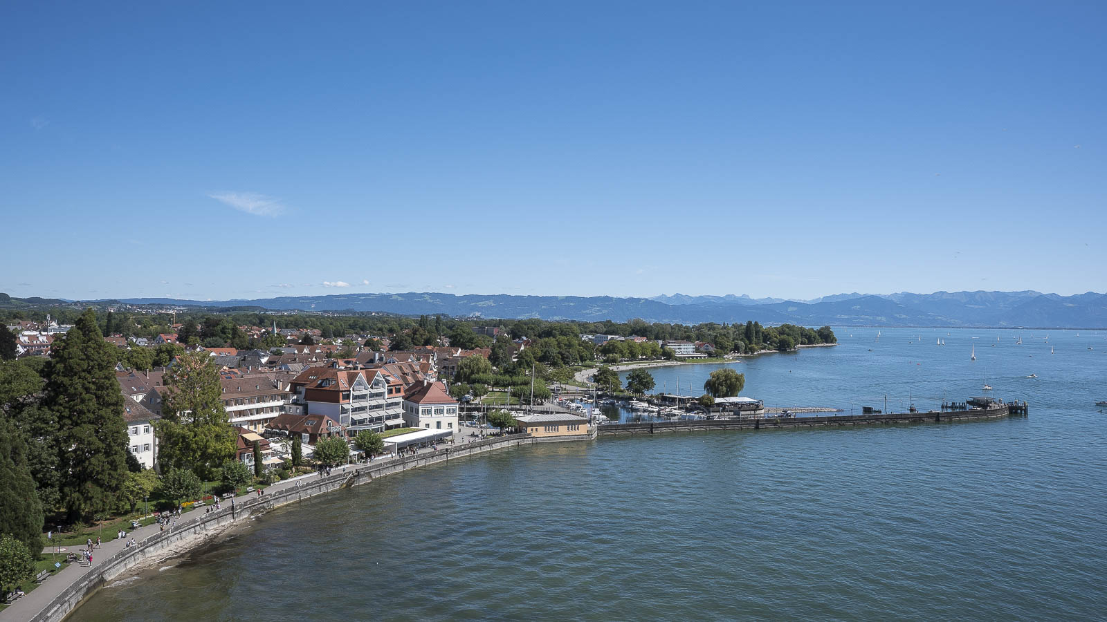 Nach der Turmbesteigung ging es weiter entlang der Uferpromenade zum Hafen. Hier befindet sich ein Schiffsanleger für die Bodenseeschifffahrt und in einem schönen, alten Gebäude ist das Touristenbüro untergebracht. Die Anlegestelle wird sowohl von der deutschen, als auch von der schweizer Bodenseeschifffahrt angefahren.