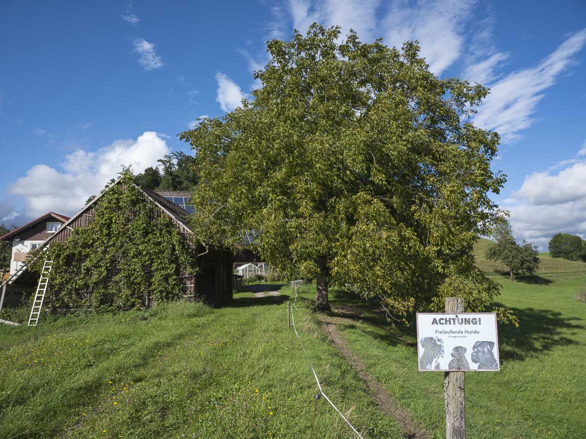 Der weitere Weg führte über einen Bauernhof am Fuße des Hügels entlang. Ein Schild mit „Privatgelände – Vorsicht vor freilaufenden Hunden“ warnte uns. Ich liebe es !! Wir hatten Glück und bekamen weder Hunde noch deren Besitzer zu sehen und waren froh als wir das Gelände hinter uns ließen.