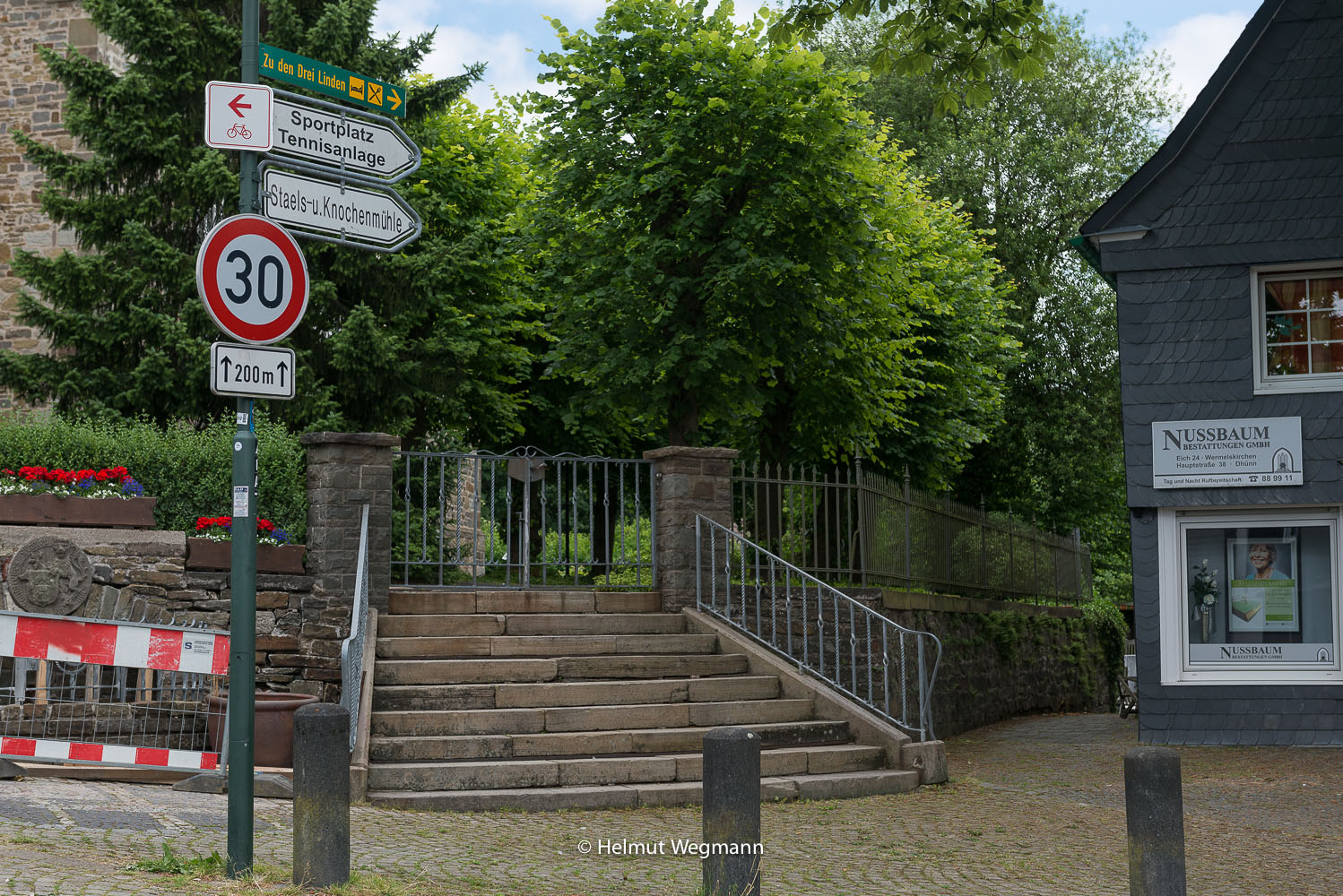 Wir durchquerten den kleinen Ort von unserem Parkplatz an der Hauptstraße aus und liefen in Richtung Eifgental. Der Weg dort ist gut markiert und das gleich mehrfach. Verlaufen kann man sich da nicht. Die Strecke außerhalb des Eifgentales ist größtenteils gar nicht markiert. Man muss sich hier anhand des Navis orientieren, vor allem zwischen Eifgental und Dhünn. Hinter Dhünn gibt es wieder Markierungen verschiedenster Art.