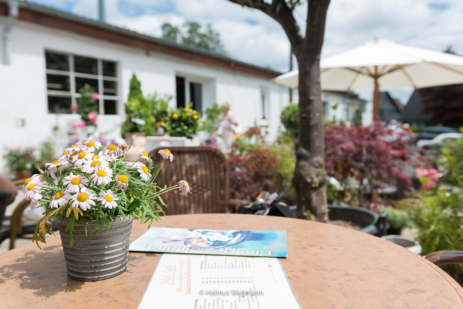 Wir machten uns also auf den Weg. Das dauerte aber eine ganze Weile und wenn die Beschreibung nicht so genau und bestimmt gewesen wäre, hätten wir mit Sicherheit aufgegeben. Am Ende wurden wir doch belohnt. Das Eiscafe wurde von einem italienischem Gärtner in einer größeren Gärtnerei betrieben. Er bot selbstgemachte, italienische Eisspezialitäten an. Mein Amareno-Becher war sehr lecker und Petra stand mir helfend zur Seite.