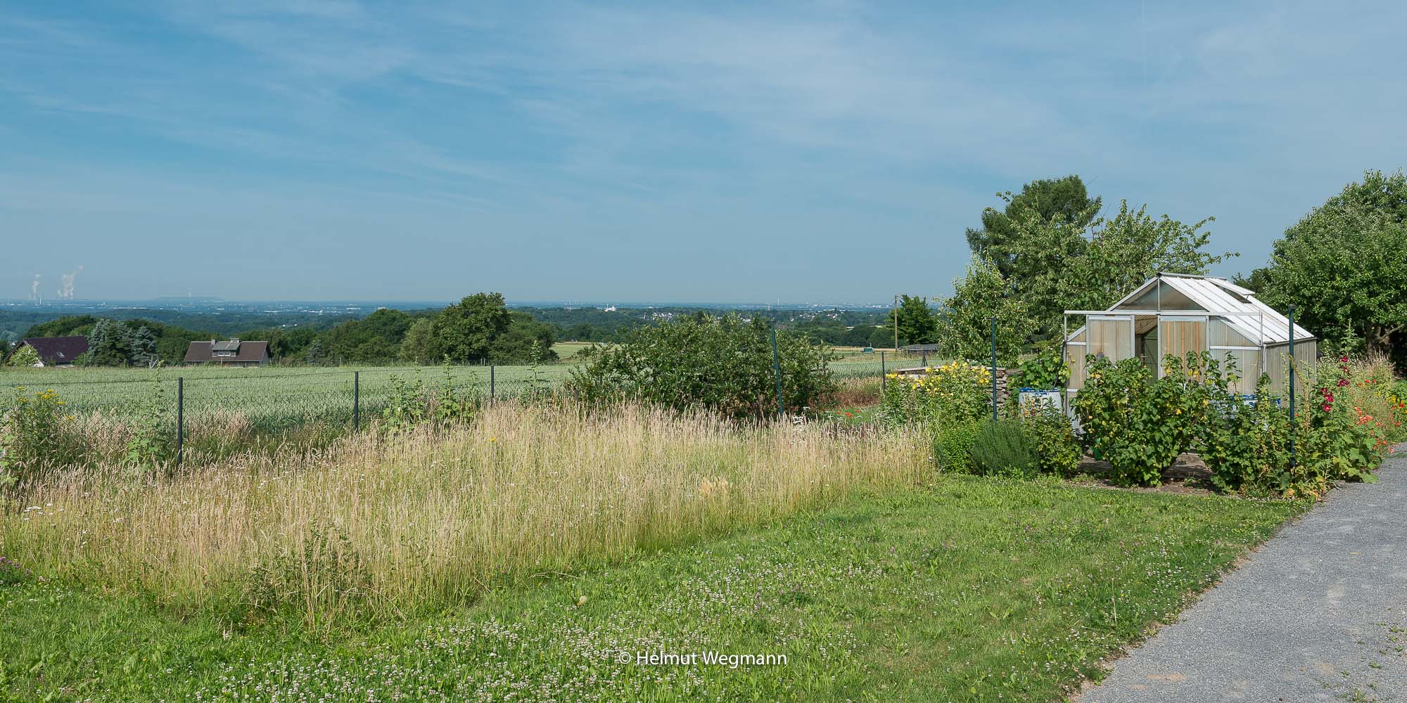 Am „Ortsende“ von Friedrichsaue geht es rechts ab in den Wald hinein. Zunächst noch auf der Straße, aber schon bald biegt man auf einen Waldweg ab. Hier ist der Weg dann wirklich herrlich. Wenn man auf der Höhe angekommen ist und den Wald wieder verlassen hat bieten sich schöne Ausblicke auf das andere Wupperufer. In westlicher Richtung kann man über den Rhein hinweg blicken und in der Ferne die senkrecht aufsteigenden Wasserdampfsäulen der rheinischen Kraftwerke erkennen.