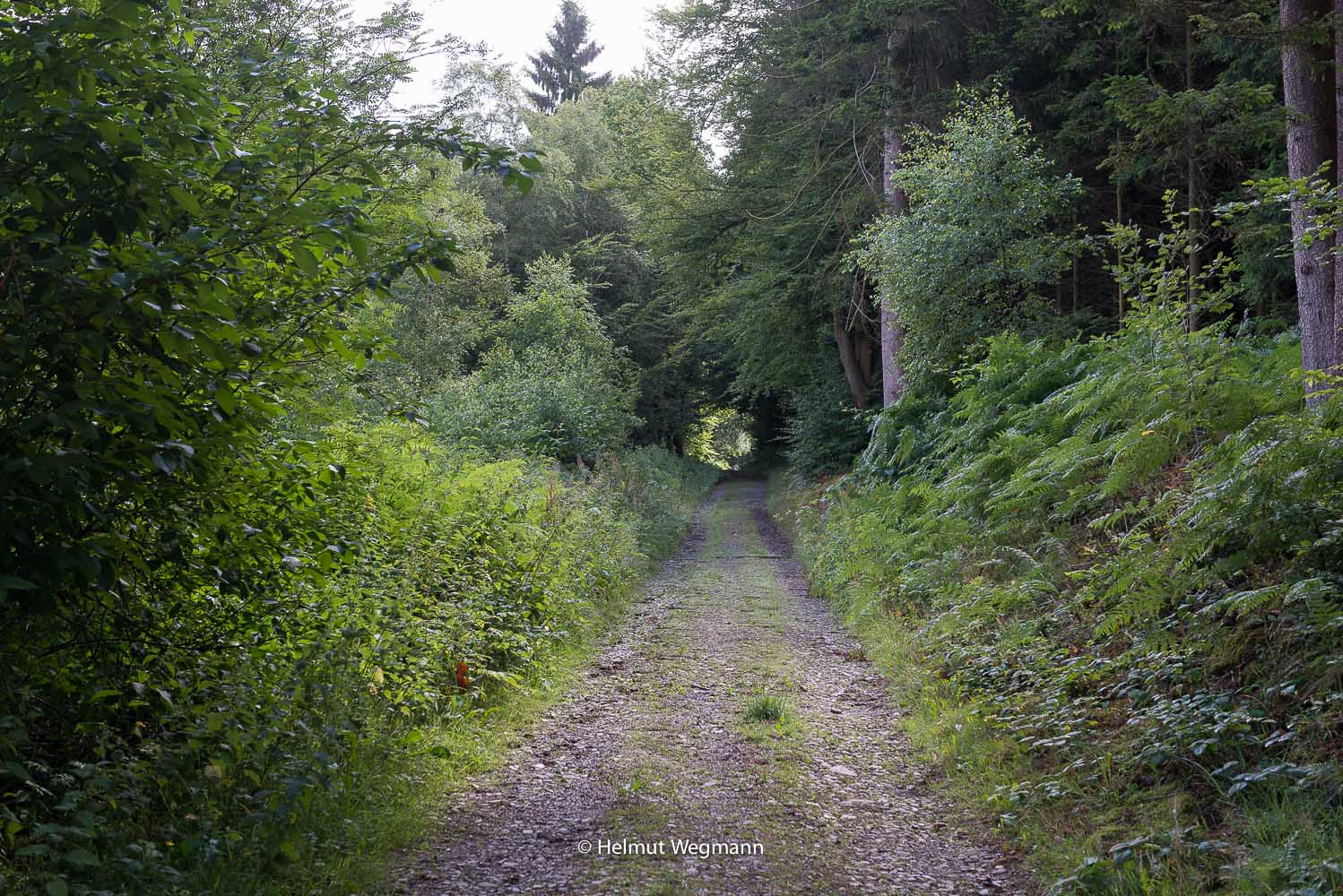 Der Weg ging zunächst durch geschlossenen Wald. Obwohl es gestern fast den ganzen Tag geregnet hatte, war es auf der gesamten Strecke kaum matschig. Nach ca. 1 km, an der ersten Info Tafel, begegnete mir eine morgendliche Joggerin mit Hund. Dabei sollte es dann bleiben. Auf der ganzen Wanderstrecke war ich als Einziger unterwegs (von der Ortsdurchquerung in Kürten mal abgesehen).