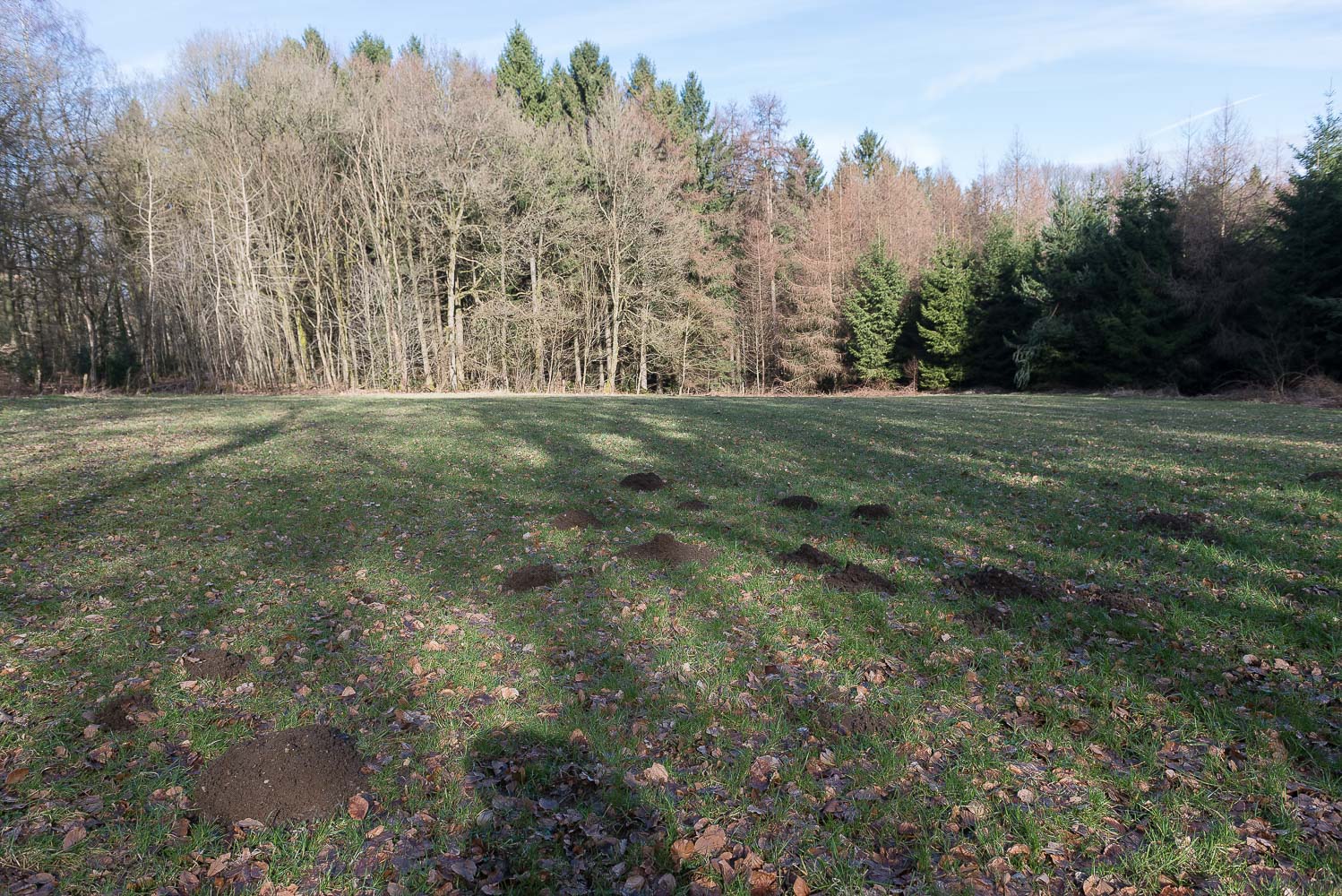 Es war etwa kurz nach 10 Uhr als ich aus dem Ort raus kam und den noch kahlen, braunen Wald betrat. Nur die Maulwürfe waren schon aktiv. Gelegentlich vorhandene, erste Blumen machten einen eher traurigen Eindruck da sie wohl noch etwas Frost abbekommen hatten und teilweise doch recht flach am Boden lagen.
