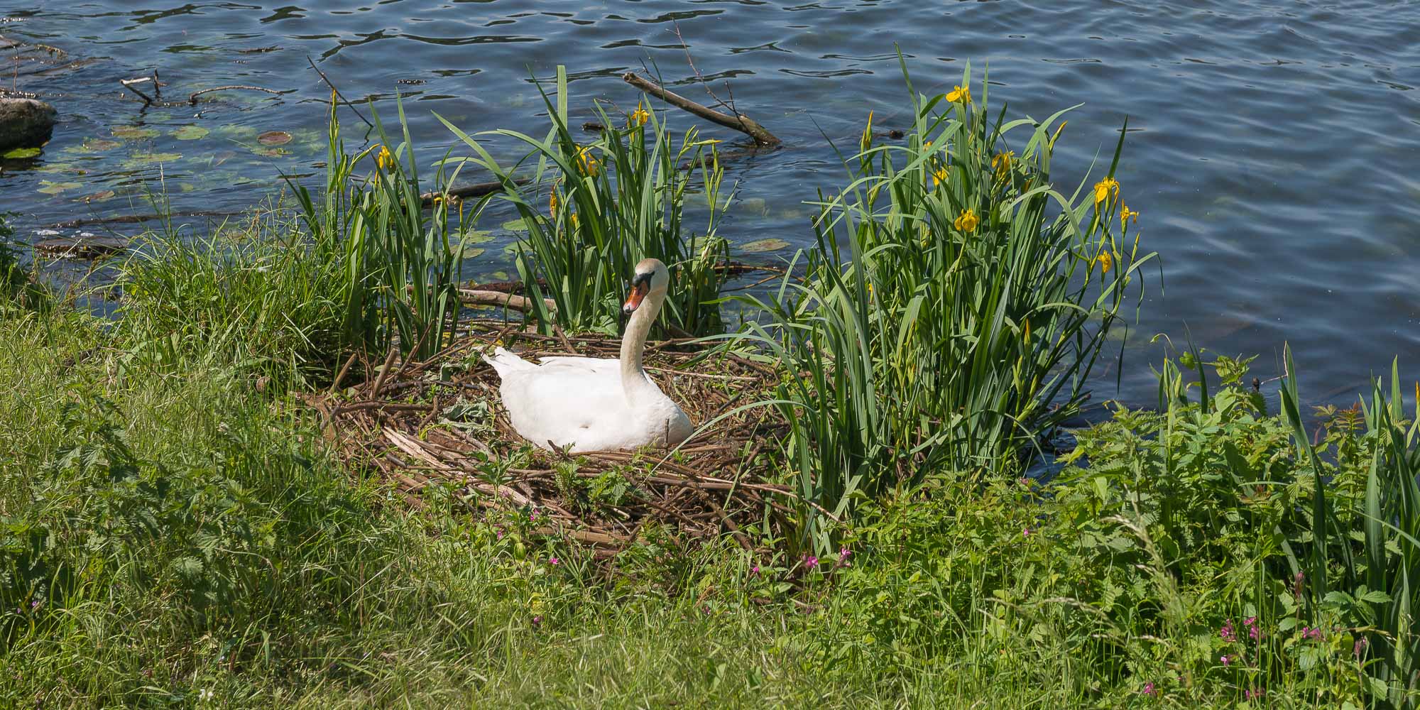 Die Wanderung geht für 3 km am See entlang, es ist ein breiter, asphaltierter Weg den sich Fußgänger, Skater und Radfahrer teilen. Für einen normalen Wochentag war schon einiges unterwegs. Am Wochenende würde ich da nicht hin wollen. Mein Wandertag aber war ein Donnerstag und es war ein schöner Donnerstag. Ich genoss den Ausblick über den See und meine Wanderung verlief recht schleppend, da ich doch öfters den Auslöser meiner Kamera betätigen mußte. Besonders die Wasservögel und der Ausflugsdampfer „Essen“ hatten es mir angetan. Aber auch die Ausblicke über den See waren nicht schlecht.