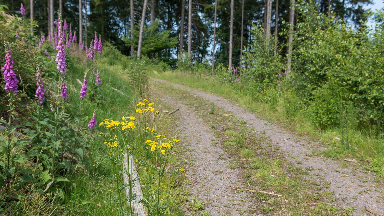 Nach der Überquerung der Gleise geht es weiter abwechselnd über Feld und durch Wald. Vielfältig war die Blütenpracht am Wegesrand und ich kam nicht umhin gelegentlich mal den Kameraauslöser zu betätigen.