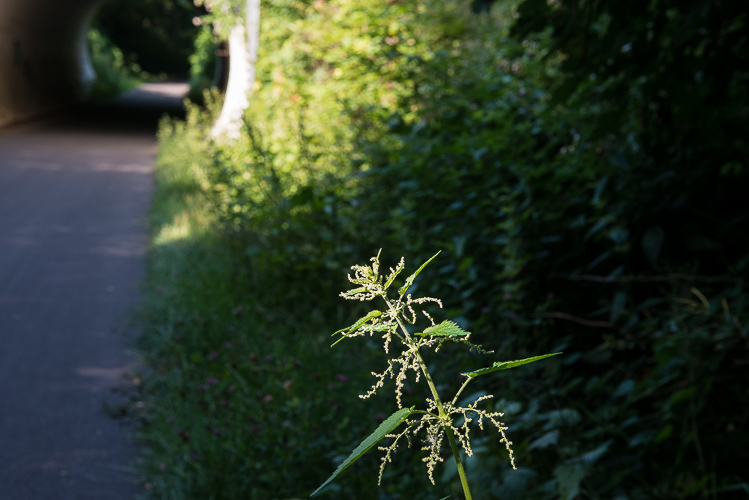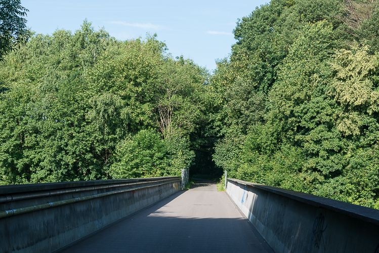 Zunächst ging es ein kurzes Stück entlang der Kölner Str. (B 52) bis zum neuen Hilgener Busbahnhof. An der dortigen Kreuzung war 4 Jahre lang gebaut worden und ich hatte gedacht die werden nie fertig. Aber jetzt, wo wir aus Burscheid weggezogen sind, wurde doch noch was daraus. Das Ganze sieht gelungen aus und die lange Warterei hat sich m.E. nach gelohnt. Der Einstieg in die Balkantrasse erfolgte kurz nach dem Busbahnhof.