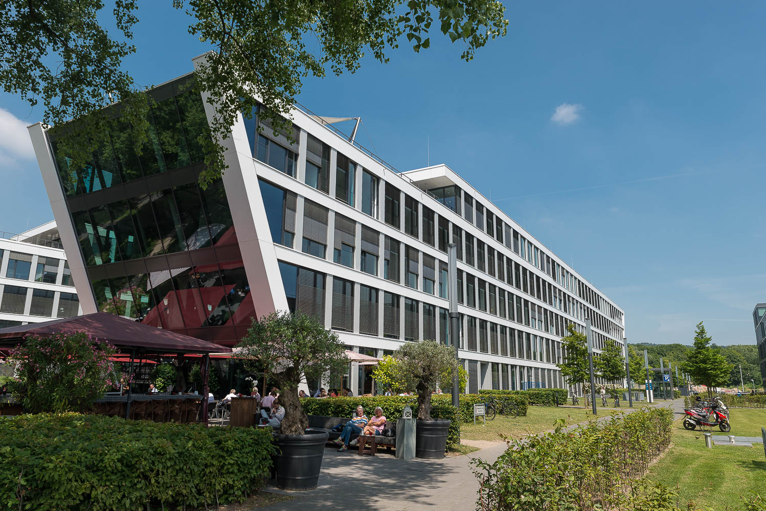 Auf der anderen Flussseite liegt direkt gegenüber dem Fähranleger das Sealife-Center. Da waren wir mal vor einigen Jahren mit einem von Petras Enkelsöhnen. Für Kinder ist es sicherlich einen Ausflug wert. Wir aber steuerten sofort einen Eissalon, an wo es zunächst Cafe und Cappuccino und danach noch ein Eis gab. Der restliche Weg führte auch auf dieser Rheinseite vorbei an sehr schönen Apartmenthäusern, die wohl überwiegend von Senioren bewohnt sein dürften.