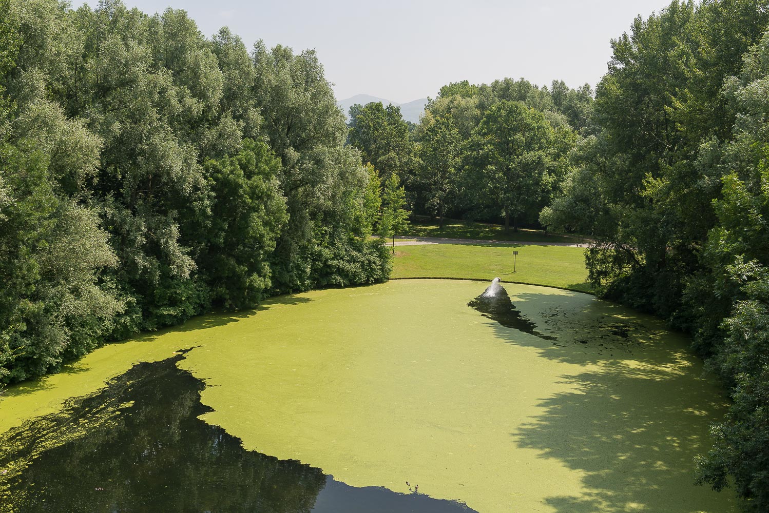Auf der Bonner Rheinseite durchquerten wir zunächst den Freizeitpark Rheinaue, bevor wir nahe des Hauses Carstanjen den Rhein erreichten. Der Turm des Hauses war uns schon von der anderen Rheinseite aus aufgefallen. Eine Infotafel wies auf die wechselvolle Geschichte des Hauses hin, welches heute von der UN genutzt wird.