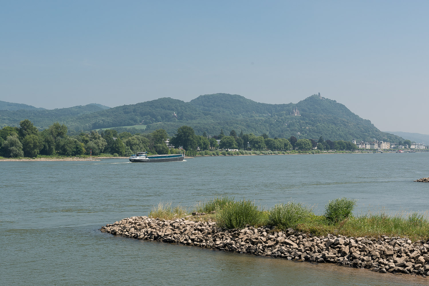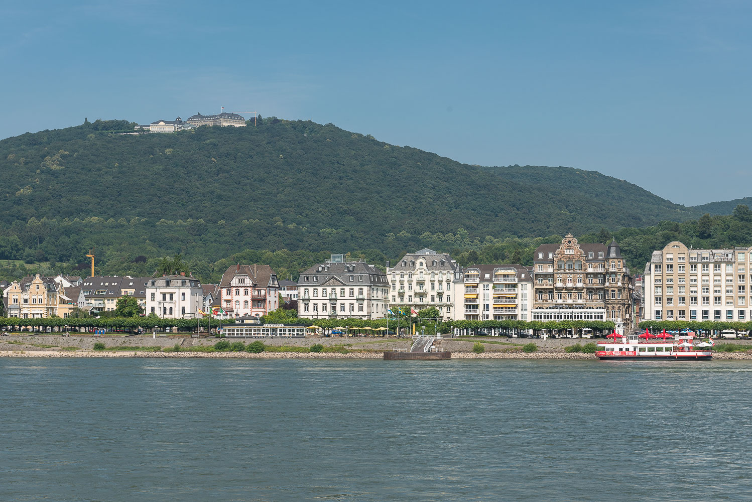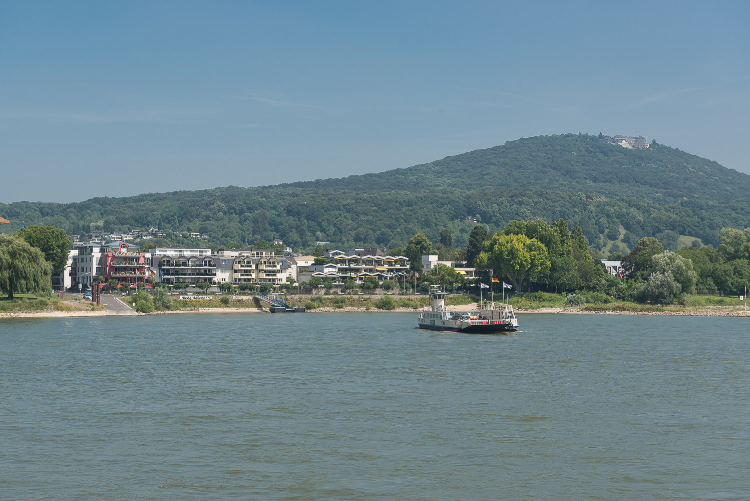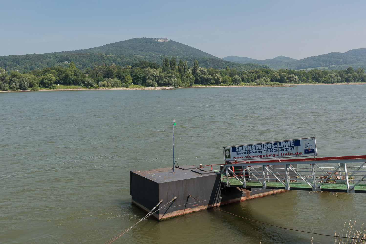 Wir liefen am Godesberg Rheinufer entlang und bewunderten die tollen Apartmenthäuser mit ihren schicken Wohnungen. Dabei überquerten wir auch den Godesbach, von dem ich vorher noch gar nichts gehört hatte. Die Aussicht auf Drachenfels und Petersberg war phantastisch. Auf der Fähre nach Königswinter waren wir die einzigen Fussgänger, ansonsten nur Radfahrer und einige PKW’s. Die Überfahrt für uns beide kostete lediglich 2,40 Euro, erstaunlich preiswert.
