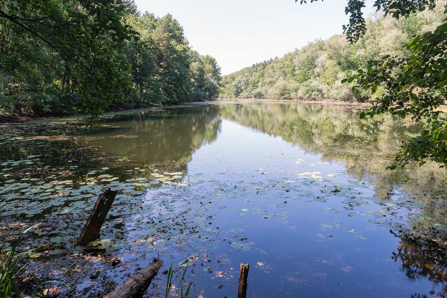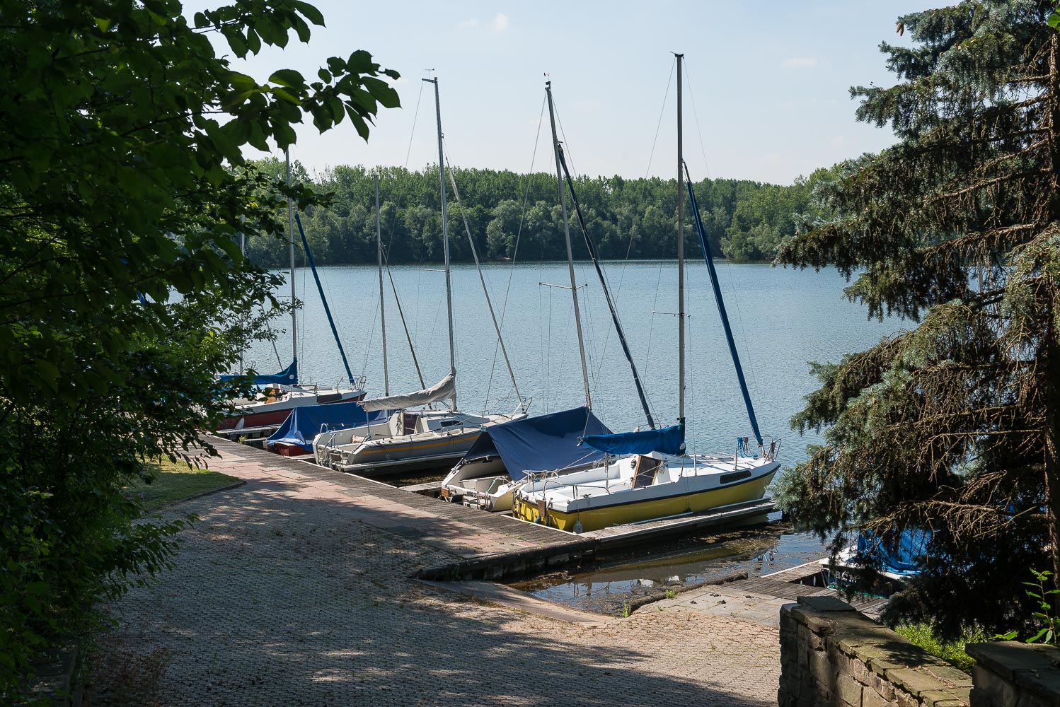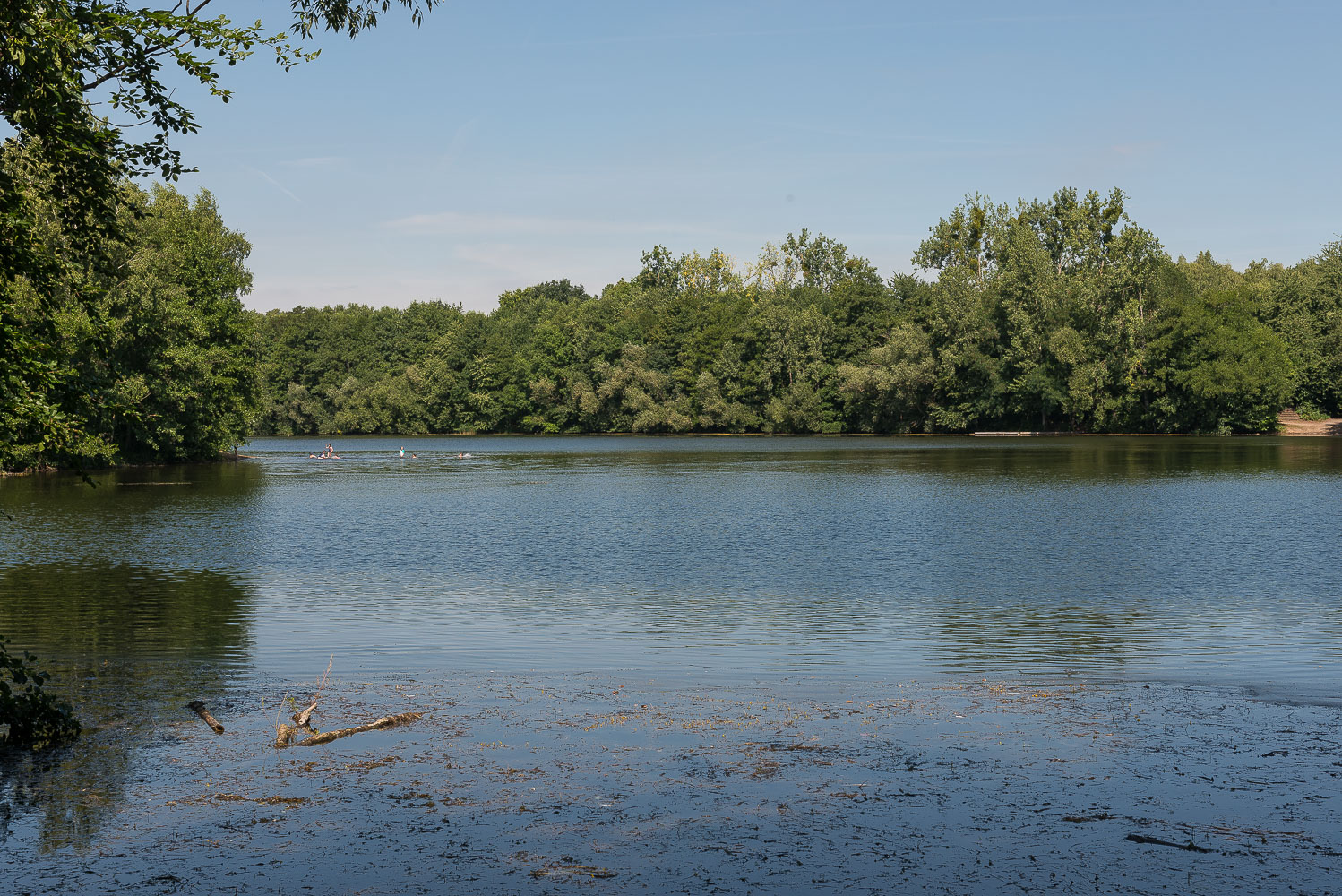 Am Heider Bergsee angekommen, wanderten wir etwa 3 km entlang des Seeufers. Das Wasser machte auf uns keinen so einladenden Eindruck (viel Laub am Ufer etc.), hatte aber offensichtlich Badewasserqualität, denn es gab ein gut genutztes Freibad dort. In diesem war auch die Benutzung von Luftmatratzen und kleineren Bötchen erlaubt.