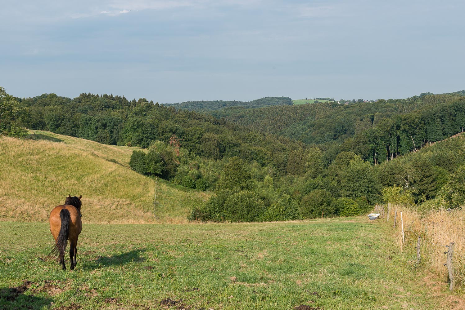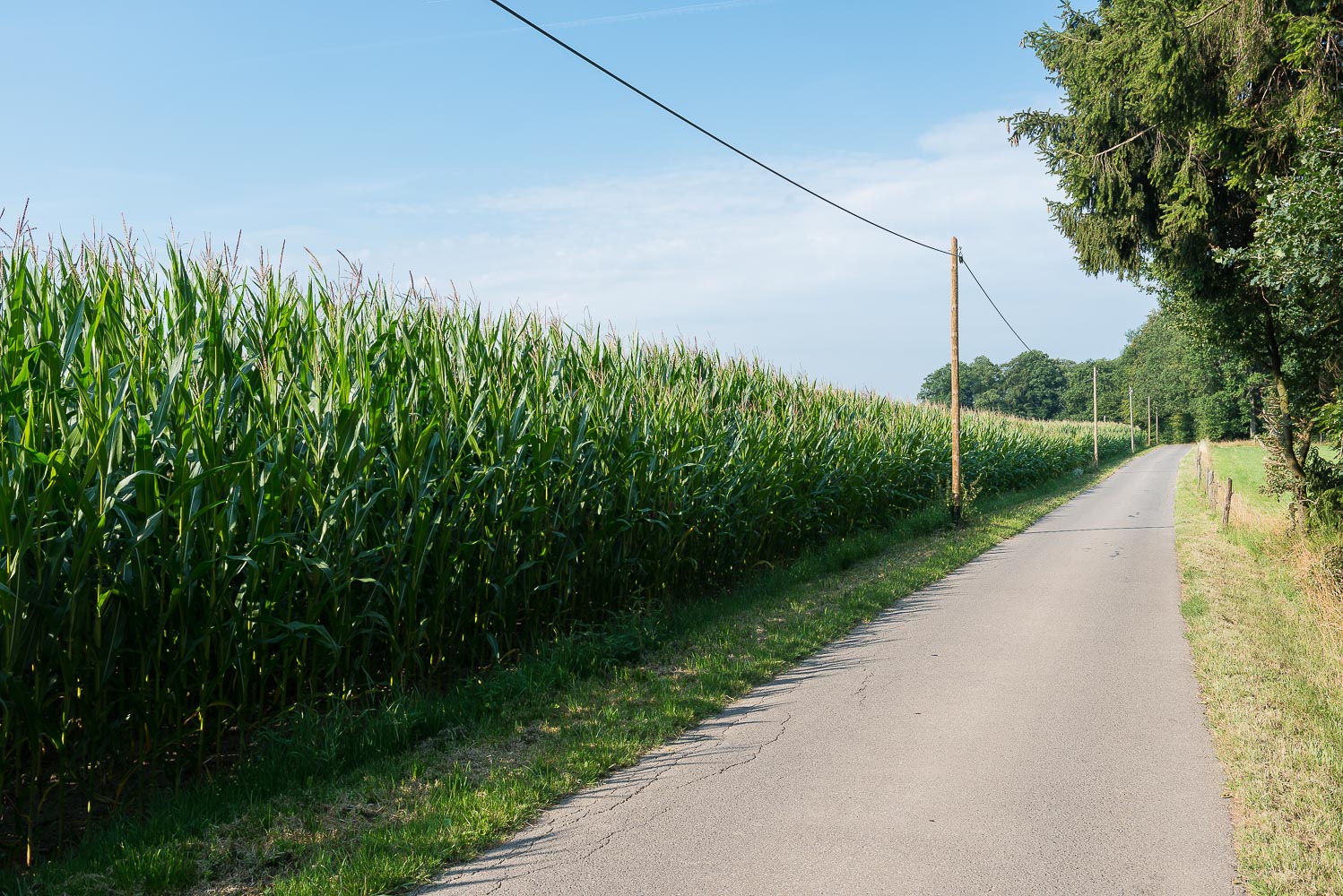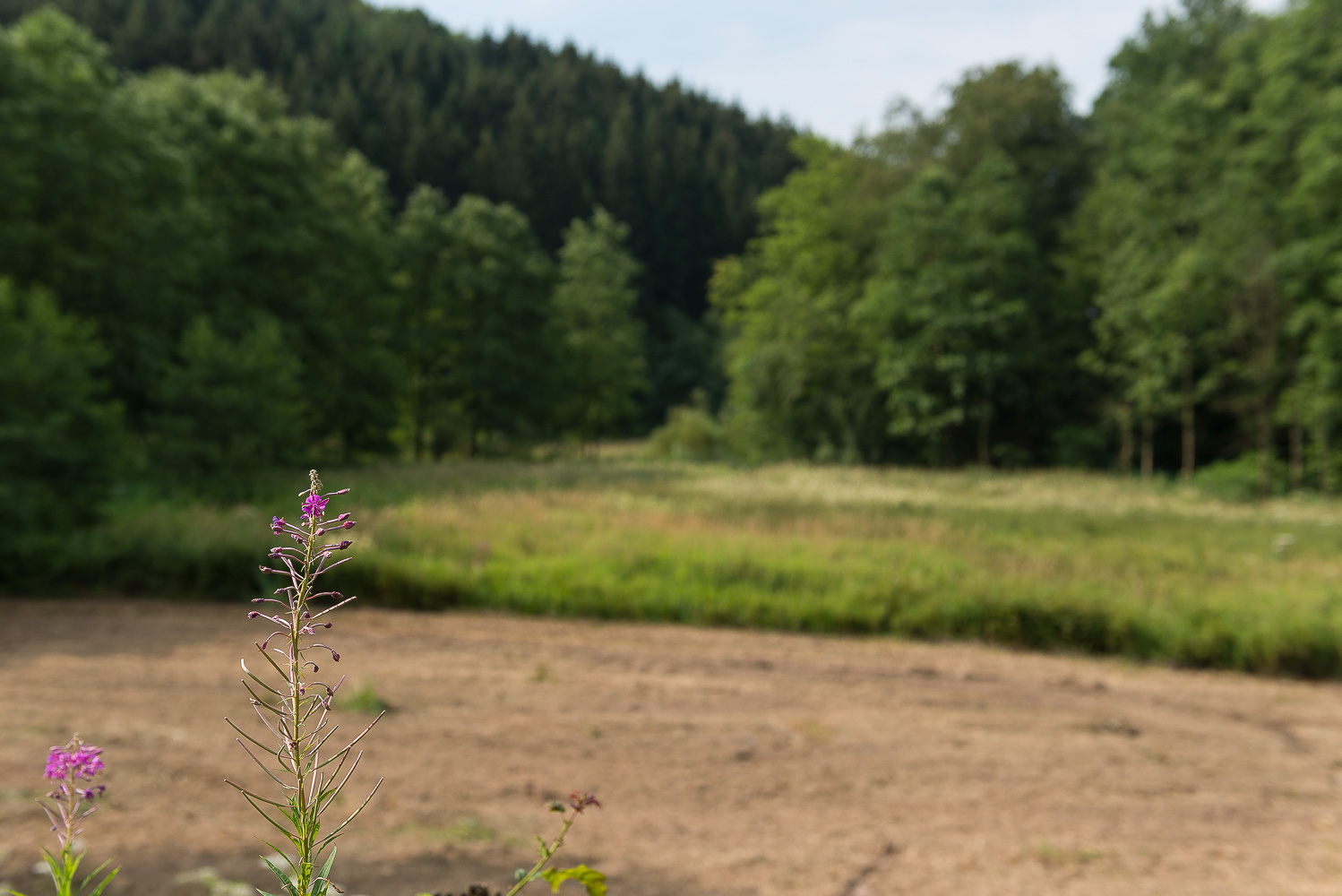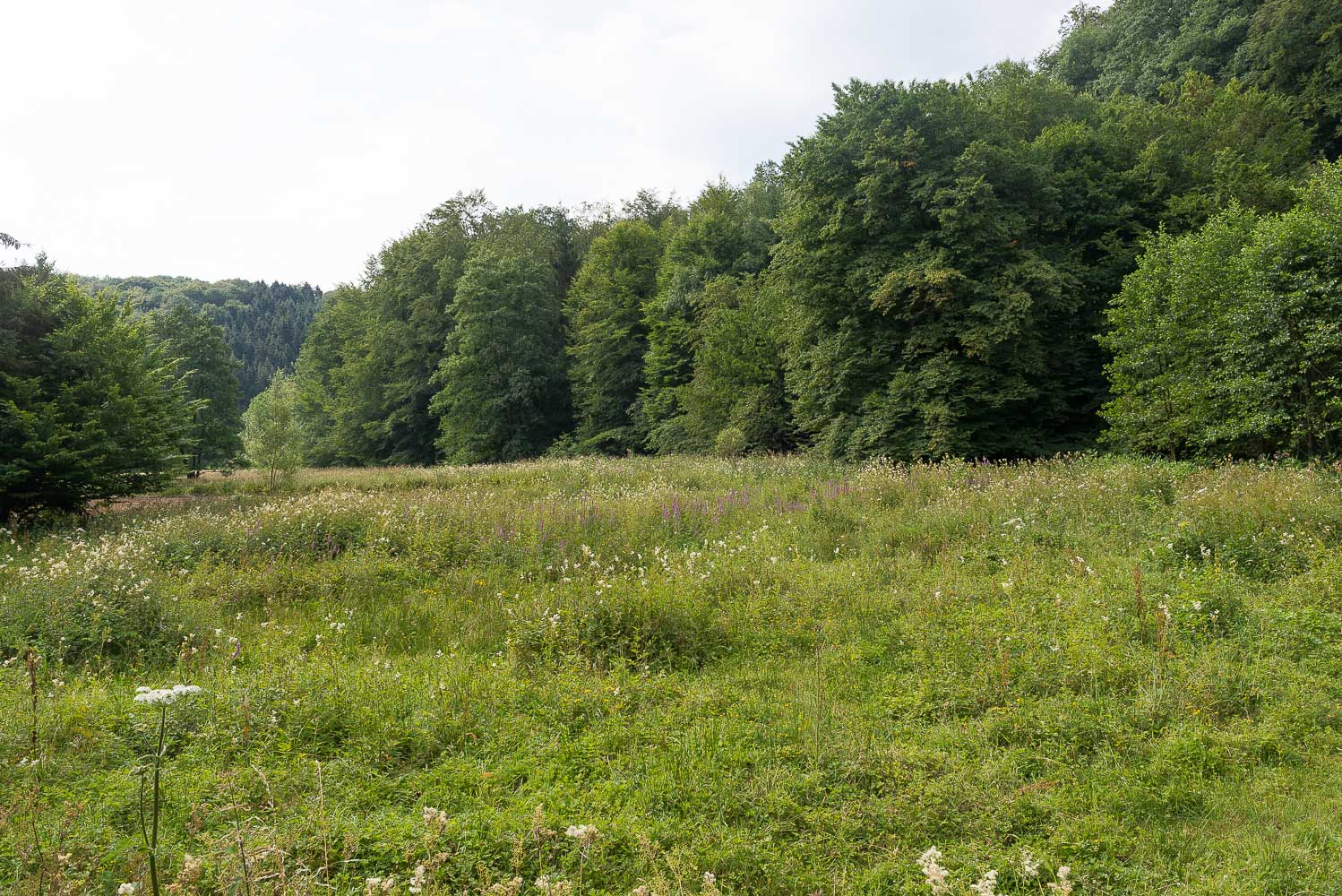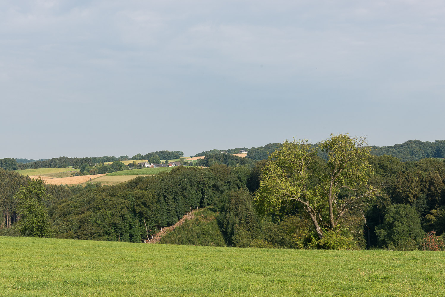 Der Weg zurück ging abwechslungsreich durch Wald oder über schöne Wege am Waldrand entlang. Das Wetter änderte sich und es zog zu. Dadurch wurde es nicht ganz so heiß wie erwartet, aber immer schwüler. Aus Angst vor einem Gewitter ging ich zügig zurück und kam nach 2 Stunden 45 Min. wieder am Wagen an. Ich fuhr zurück nach Leichlingen, der befürchtete Regen kam erst am späten Nachmittag.